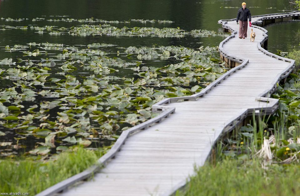 امرأة تقوم بتمشية كلبها عل طول الممر في بيمبيرتون - كولومبيا البريطانية