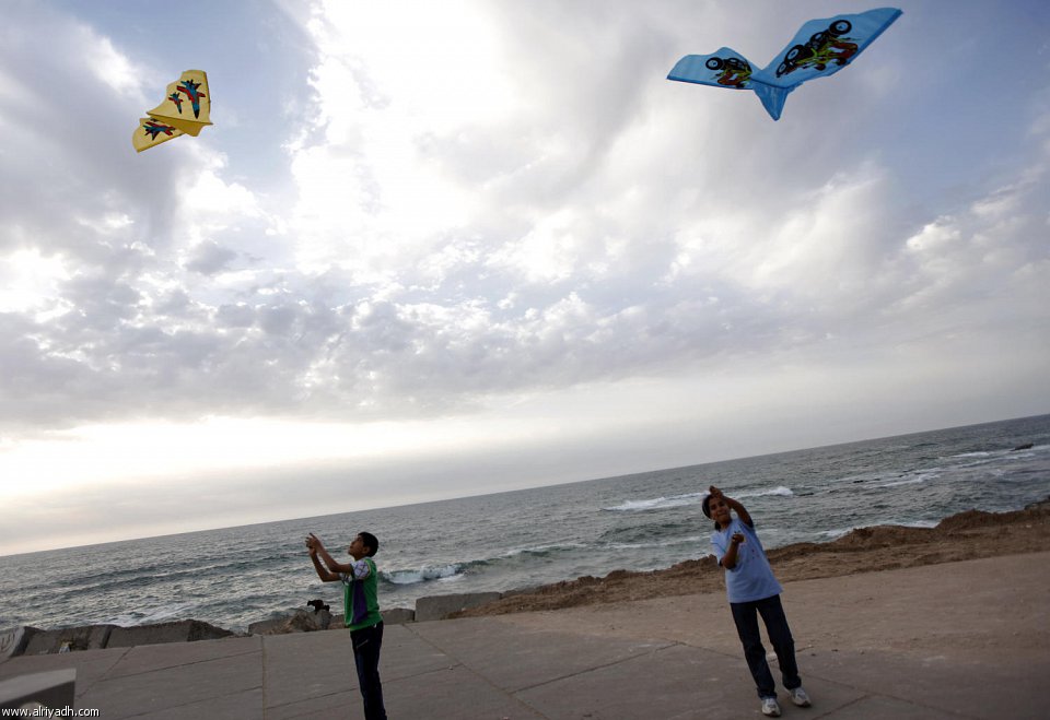 أطفال مصريين يطيرون الطائرات الورقة على شاطئ الإسكندرية - مصر