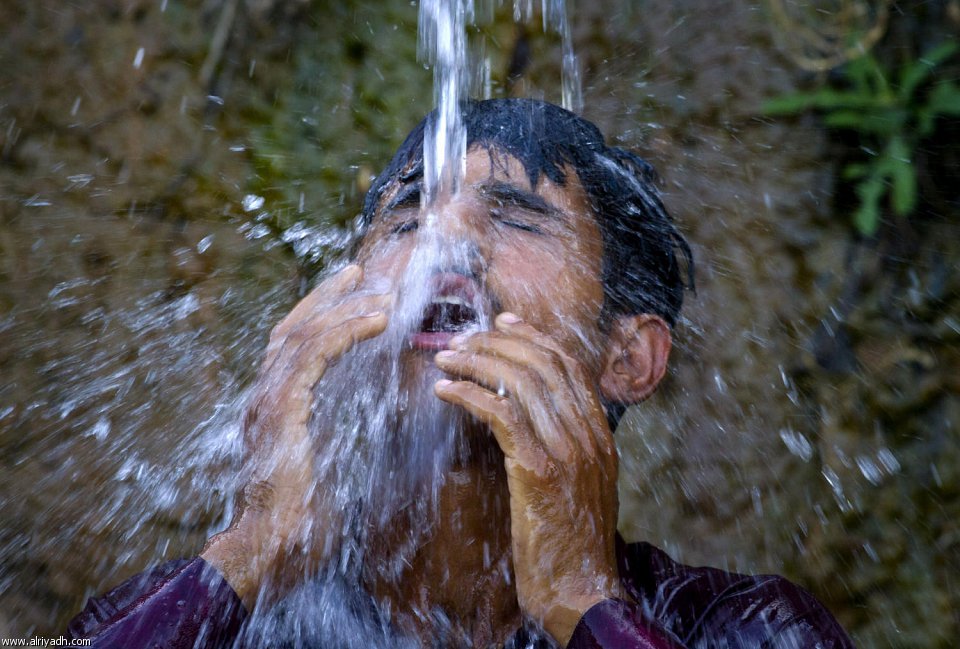 شاب باكستاني يتبرد بالمياة من انبوب امدادات المياة بسبب ارتفاع الحرارة في إسلام أباد - باكستان