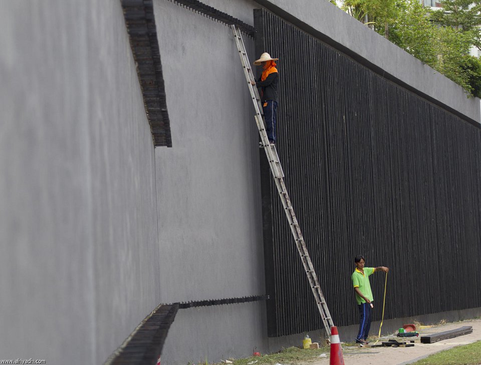 عمال بناء يقومون بوضع الواح خشبية على جدار اح المجمعات السكنية الجديدة في كوالالمبو - ماليزيا