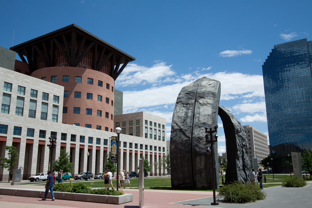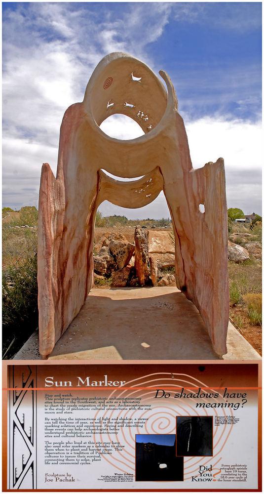 This sculpture replicates prehistoric archaeoastronomy sites found in the Southwest, and acts as a laboratory to chart the yearly migration of the sun.