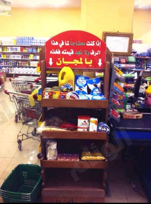 يخصص أحد الرفوف بمحلة لغير القادرين على الشراء