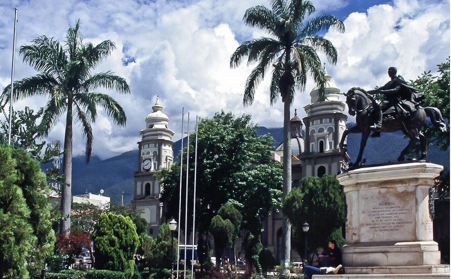 Cathedral and equestrian statue of Simon Bolivar in Merida